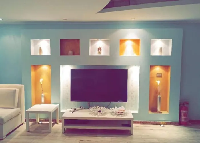 Este apartamento de 210 m², The Smallville Pyramids El El Cairo, es un lugar estupendo para alojarse en el barrio Guiza, a 2 km de la Esfinge. Este apartamento, situado en El Cairo, a unos 10 minutos en coche del Musée de la Barque Solaire, dispone de una terraza con comedores al aire libre.
